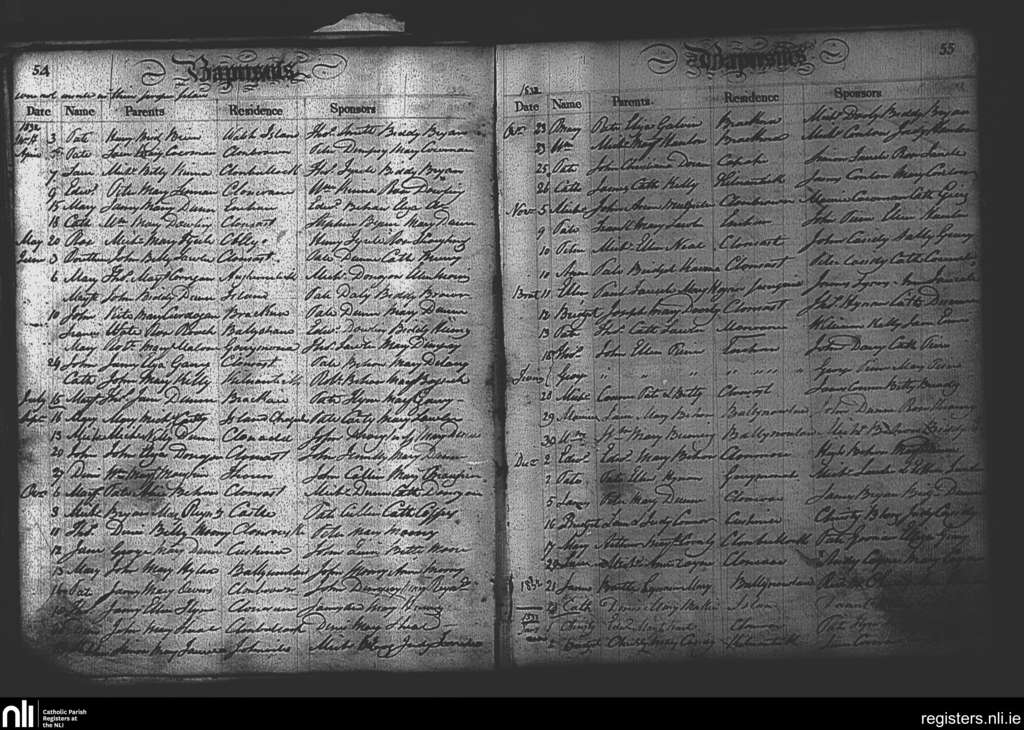 Clonbulloge; County of Offaly, Kildare; Diocese of Kildare and Leighlin. Baptisms, Apr. 1832 to Jan. 1833