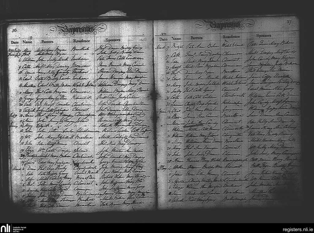 Clonbulloge; County of Offaly, Kildare; Diocese of Kildare and Leighlin. Baptisms, Jan. 1833 to May 1833