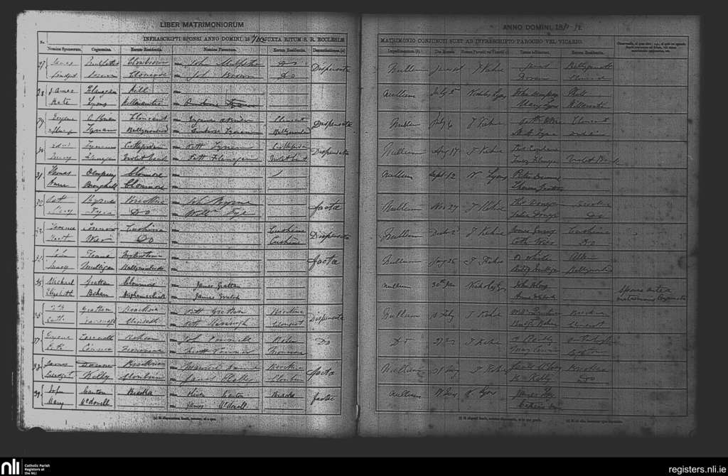 Clonbulloge; County of Kildare, Offaly; Diocese of Kildare and Leighlin. Marriages, June 1871 to June 1872
