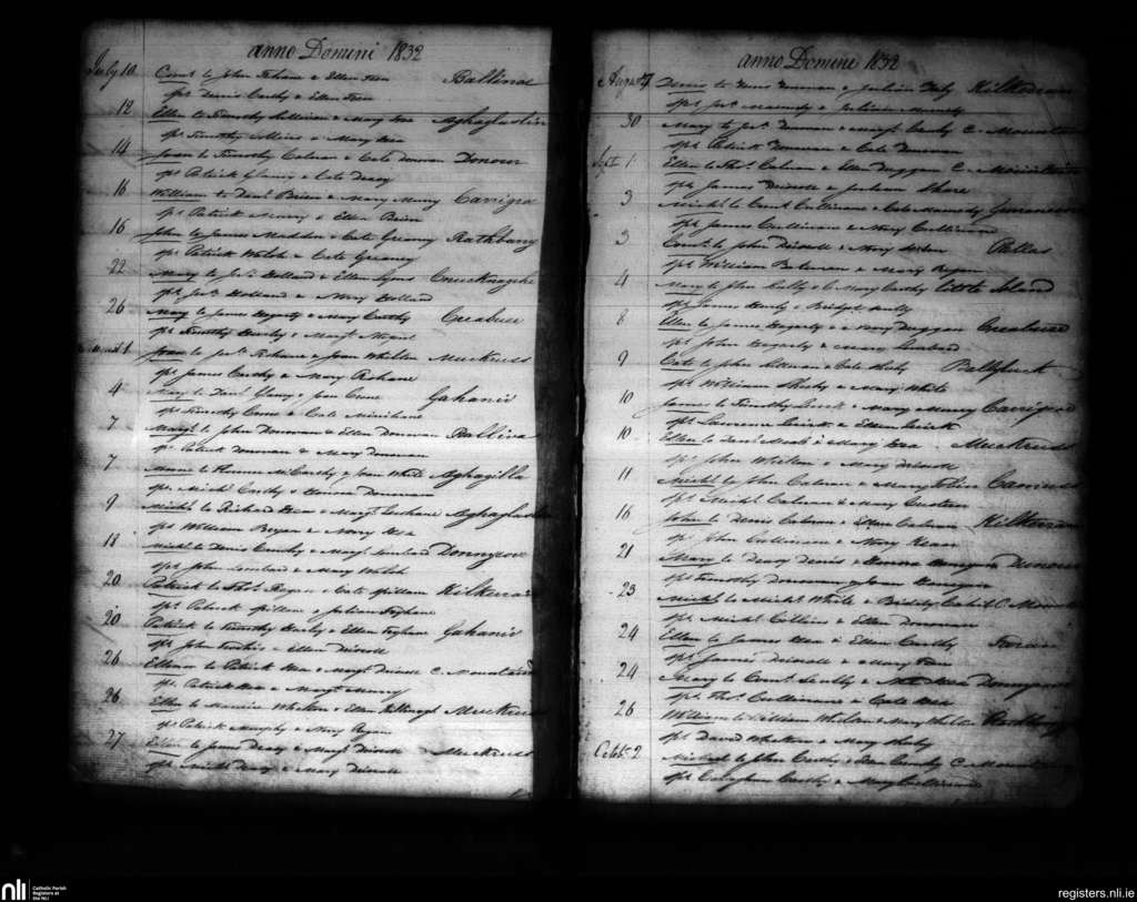 Ardfield and Rathberry; County of Cork; Diocese of Cork and Ross. Baptisms, July 1832 to Oct. 1832