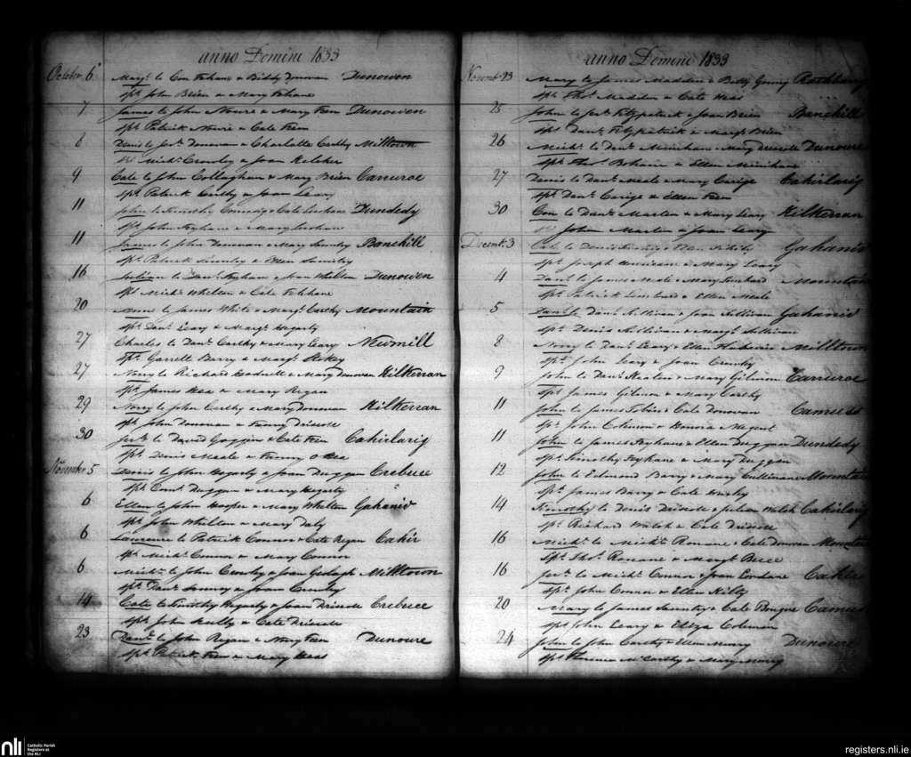Ardfield and Rathberry; County of Cork; Diocese of Cork and Ross. Baptisms, Oct. 1833 to Dec. 1833