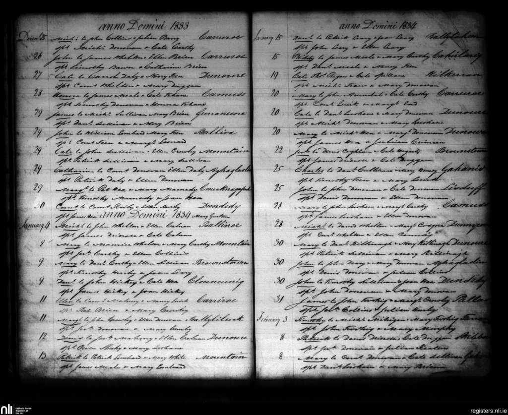 Ardfield and Rathberry; County of Cork; Diocese of Cork and Ross. Baptisms, Dec. 1833 to Feb. 1834