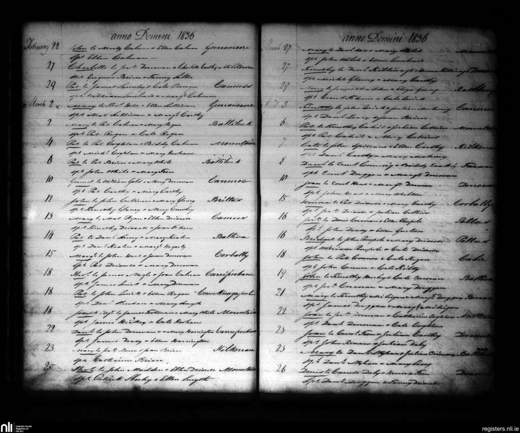 Ardfield and Rathberry; County of Cork; Diocese of Cork and Ross. Baptisms, Feb. 1836 to Apr. 1836