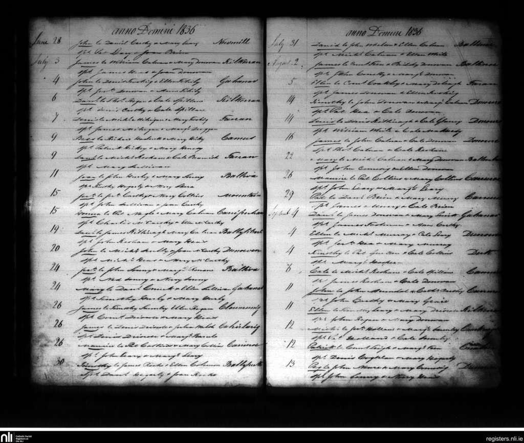 Ardfield and Rathberry; County of Cork; Diocese of Cork and Ross. Baptisms, June 1836 to Sep. 1836