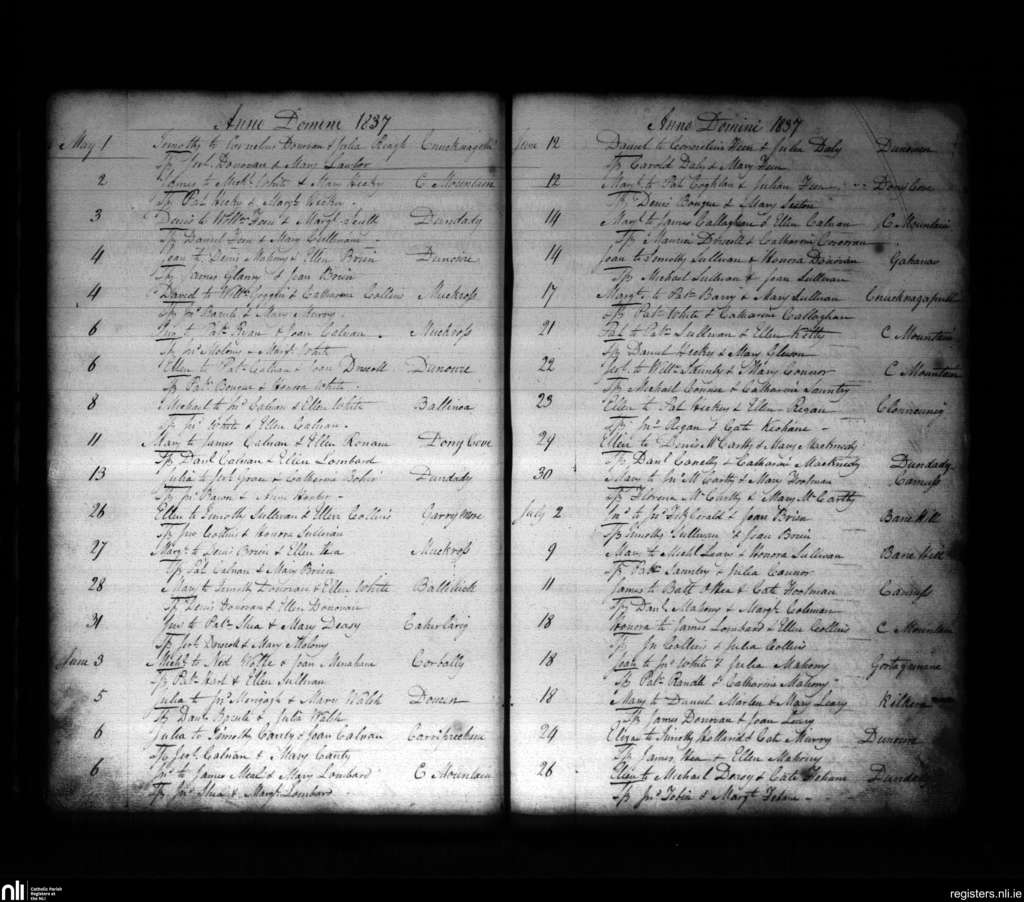 Ardfield and Rathberry; County of Cork; Diocese of Cork and Ross. Baptisms, May 1837 to July 1837