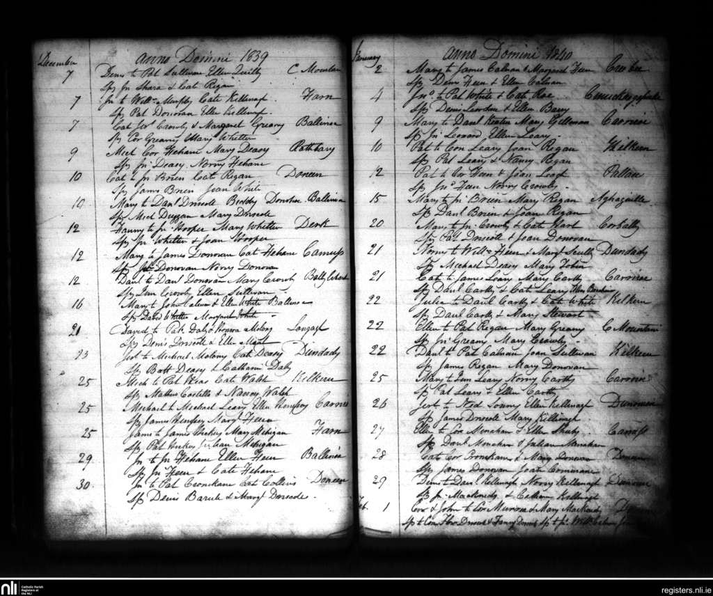 Ardfield and Rathberry; County of Cork; Diocese of Cork and Ross. Baptisms, Dec. 1839 to Feb. 1840