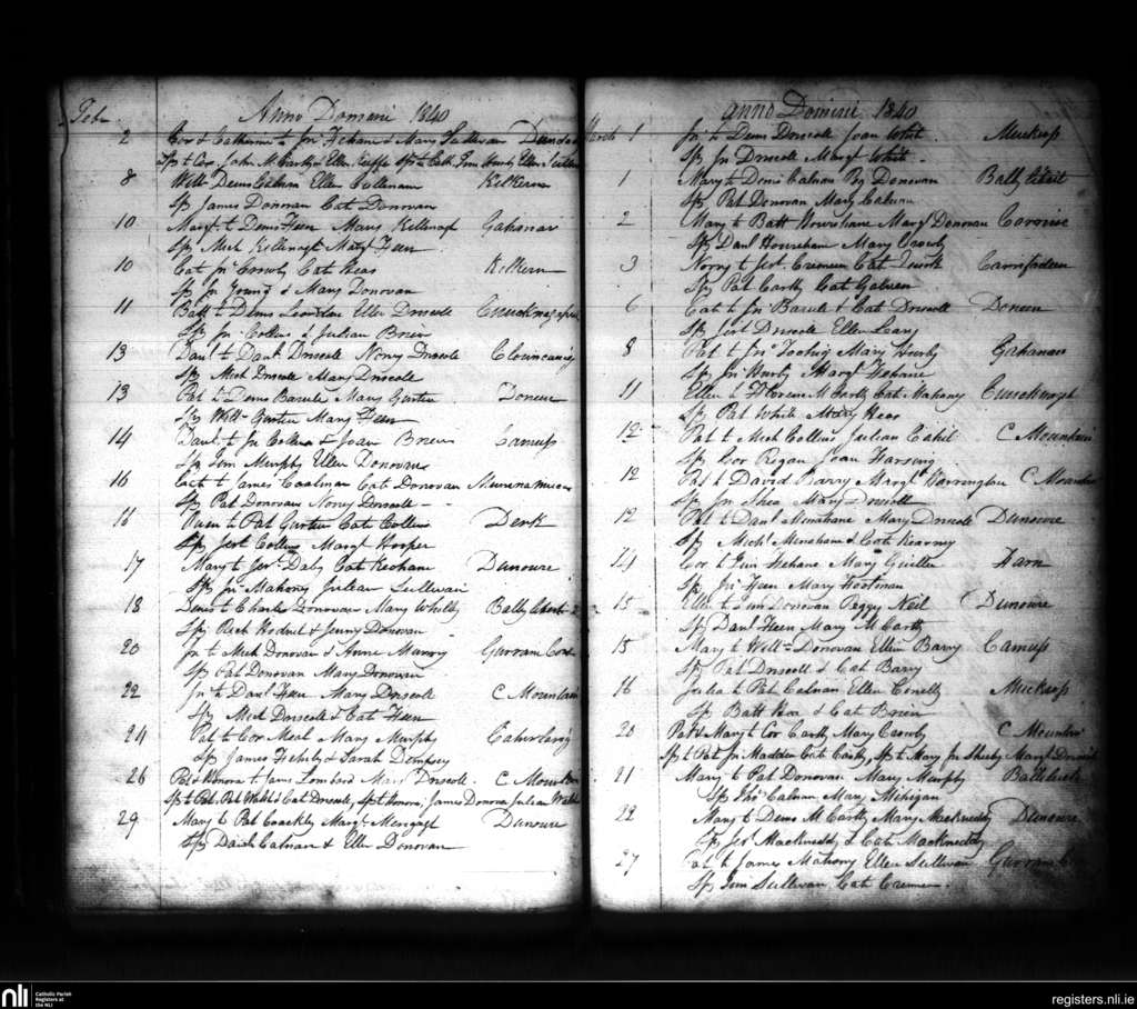 Ardfield and Rathberry; County of Cork; Diocese of Cork and Ross. Baptisms, Feb. 1840 to Mar. 1840
