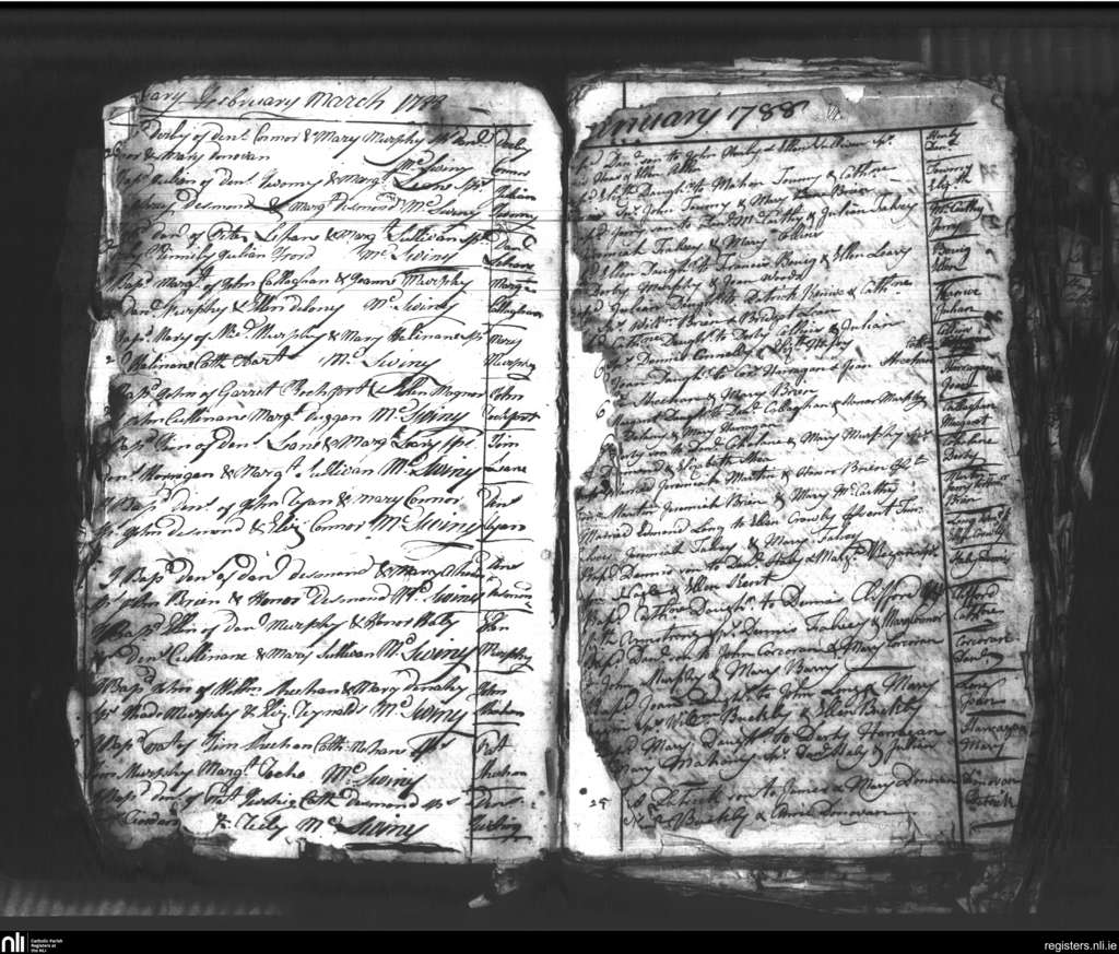 Kilmurry; County of Cork; Diocese of Cork and Ross. Baptisms, Marriages, Jan. 1788 to Mar. 1788