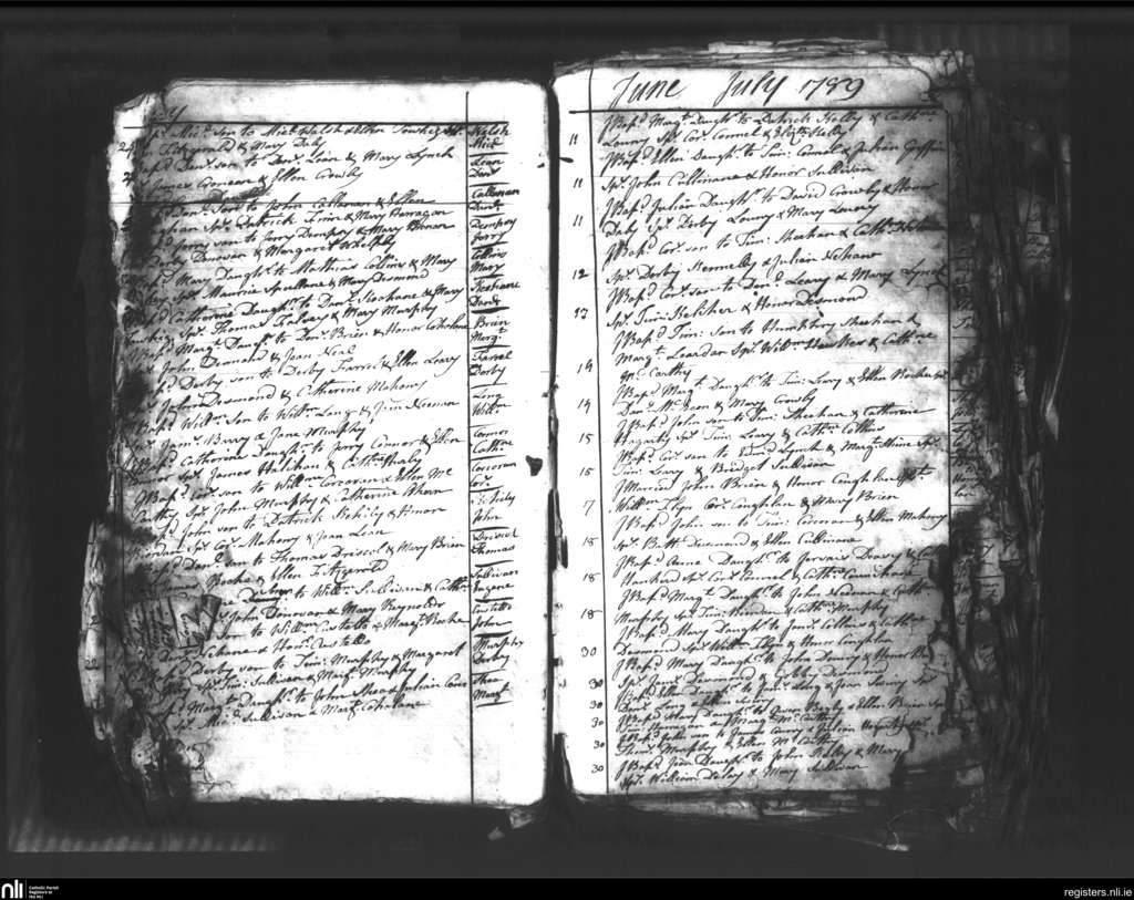 Kilmurry; County of Cork; Diocese of Cork and Ross. Baptisms, Marriages, May 1789 to July 1789