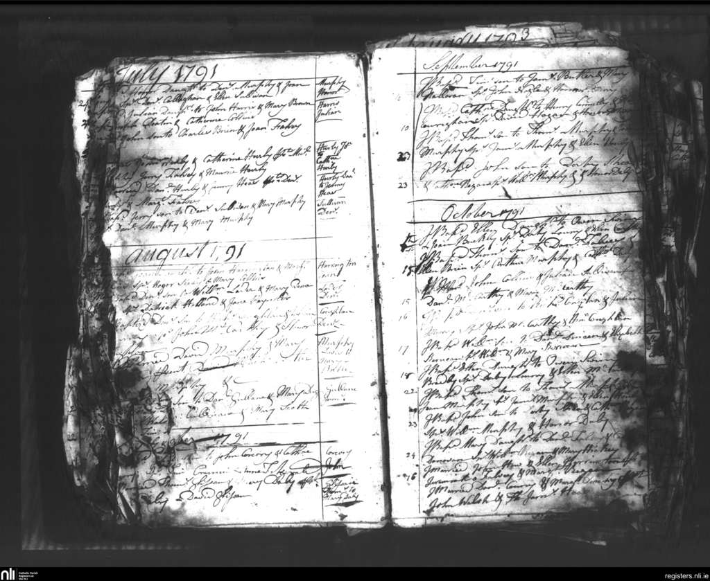 Kilmurry; County of Cork; Diocese of Cork and Ross. Baptisms, Marriages, July 1791 to Oct. 1791