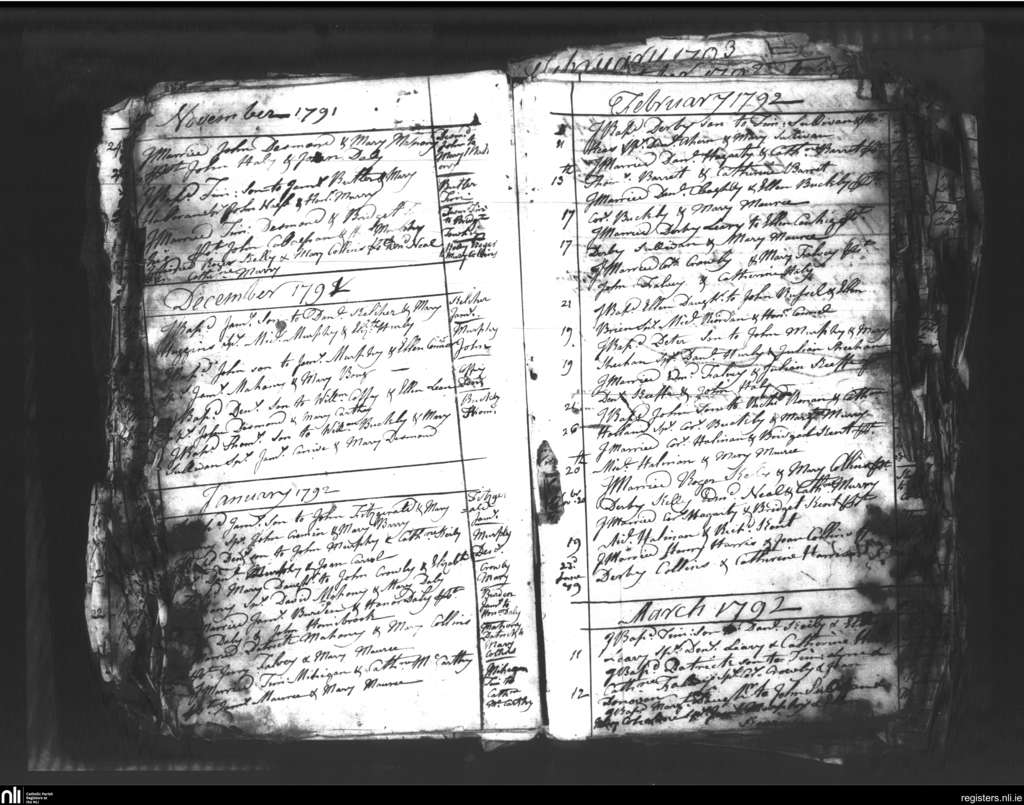 Kilmurry; County of Cork; Diocese of Cork and Ross. Baptisms, Marriages, Nov. 1791 to Mar. 1792