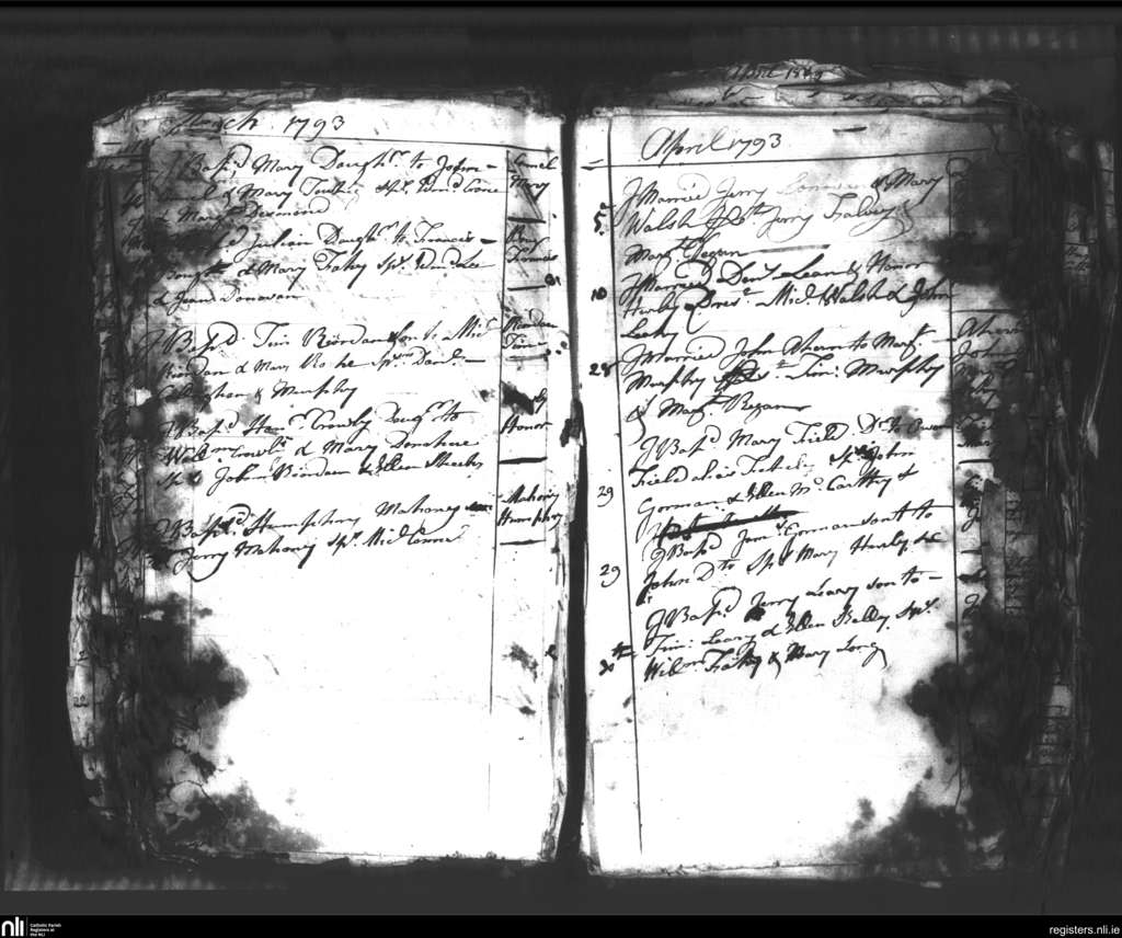 Kilmurry; County of Cork; Diocese of Cork and Ross. Baptisms, Marriages, Mar. 1793 to Apr. 1793