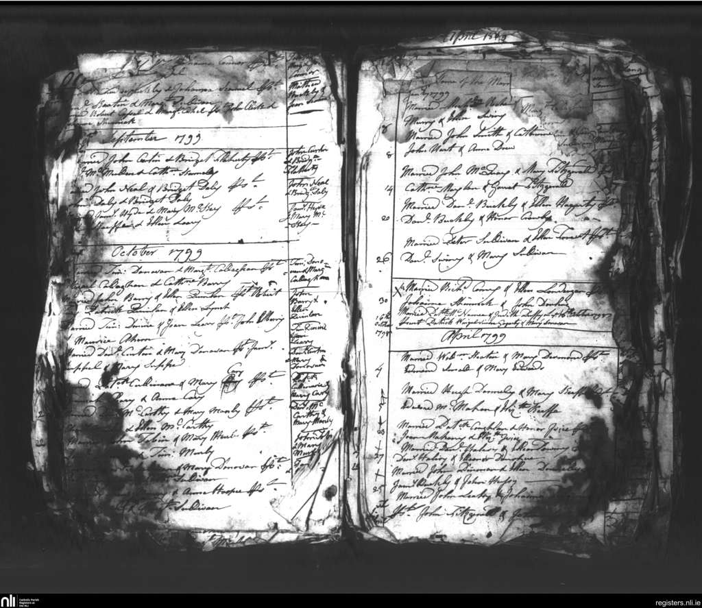 Kilmurry; County of Cork; Diocese of Cork and Ross. Marriages, Apr. 1799 to Oct. 1799