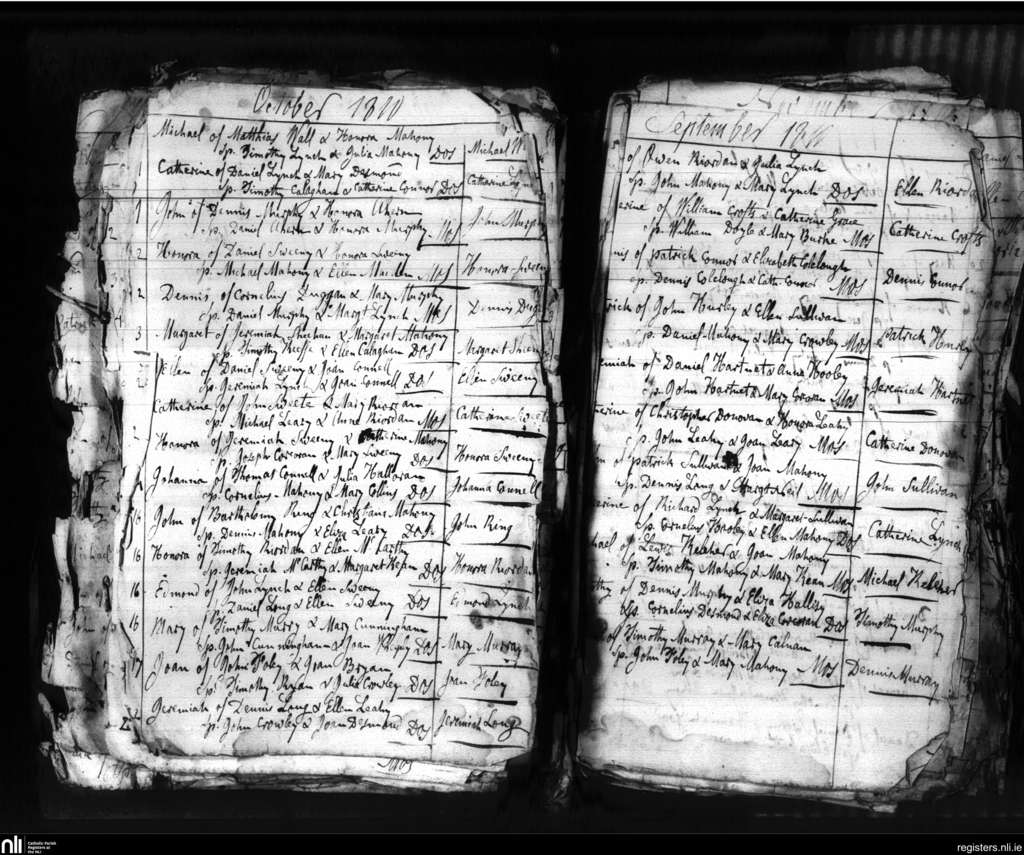 Kilmurry; County of Cork; Diocese of Cork and Ross. Baptisms, Sep. 1810 to Oct. 1810