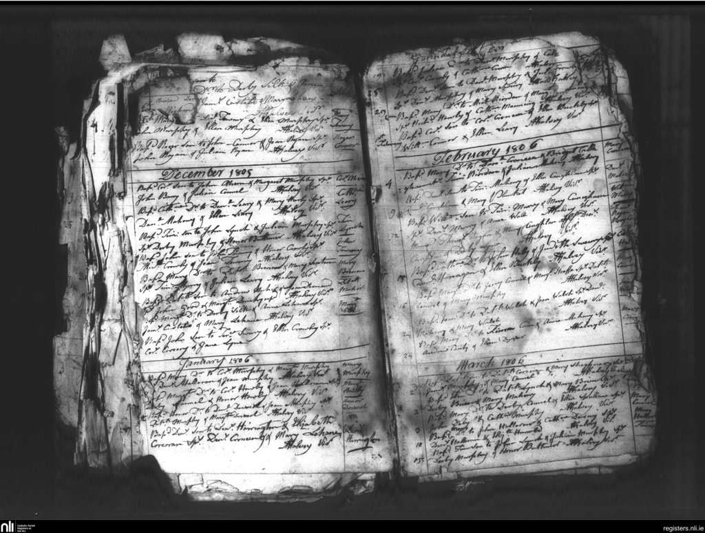 Kilmurry; County of Cork; Diocese of Cork and Ross. Baptisms, Marriages, Dec. 1805 to Mar. 1806