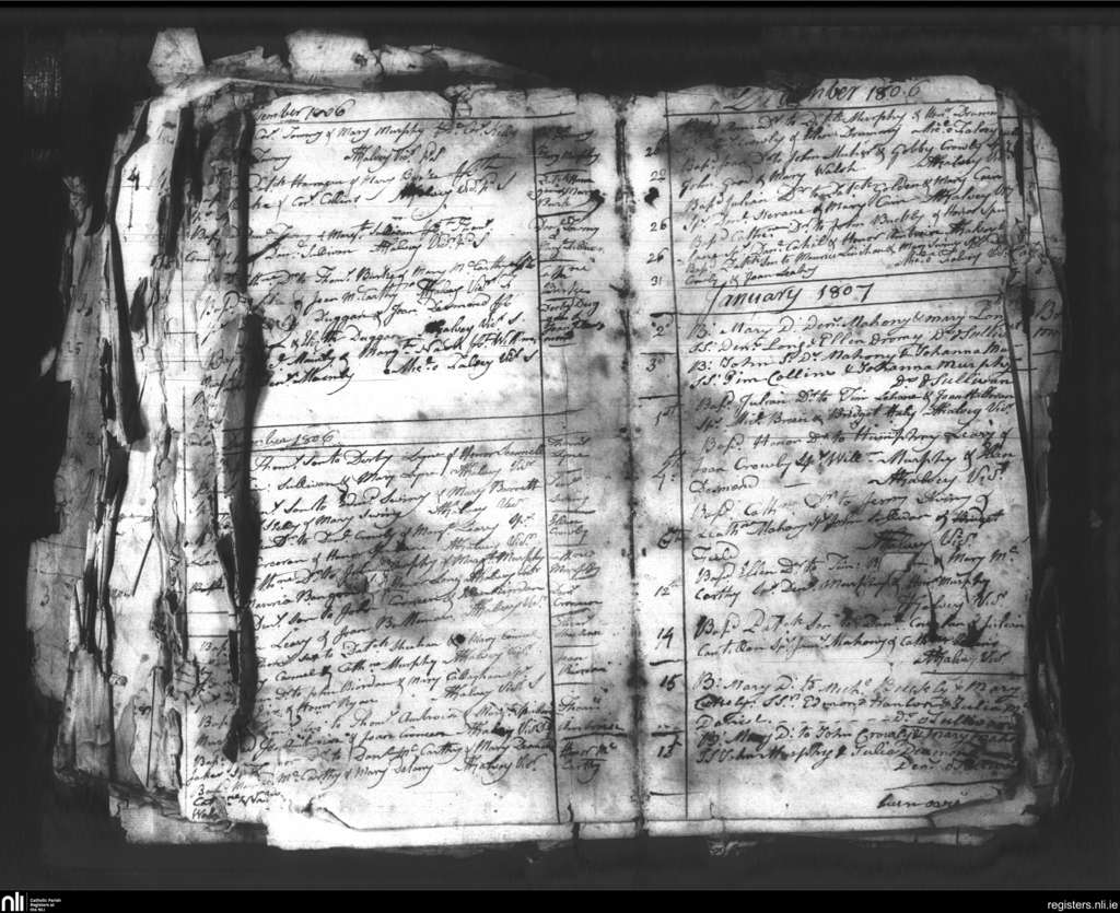 Kilmurry; County of Cork; Diocese of Cork and Ross. Baptisms, Marriages, Nov. 1806 to Jan. 1807