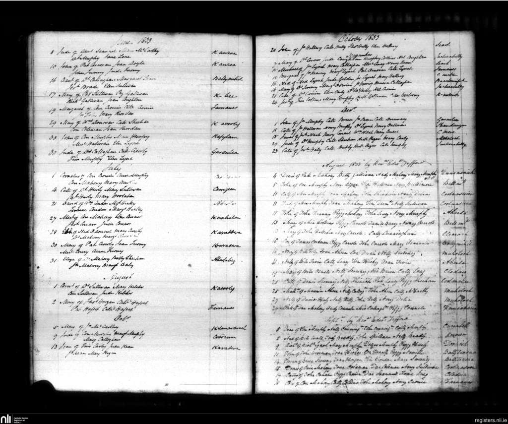 Kilmurry; County of Cork; Diocese of Cork and Ross. Baptisms, June 1833 to Dec. 1833