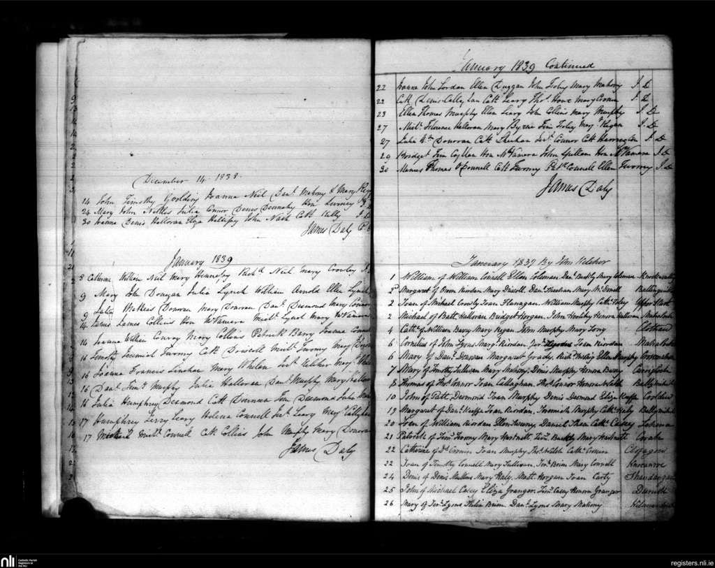 Kilmurry; County of Cork; Diocese of Cork and Ross. Baptisms, Dec. 1838 to Jan. 1839