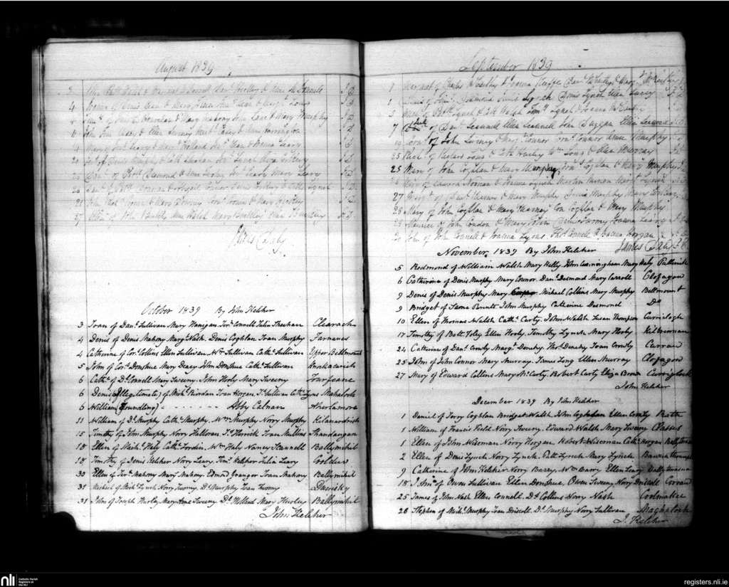 Kilmurry; County of Cork; Diocese of Cork and Ross. Baptisms, Aug. 1839 to Dec. 1839