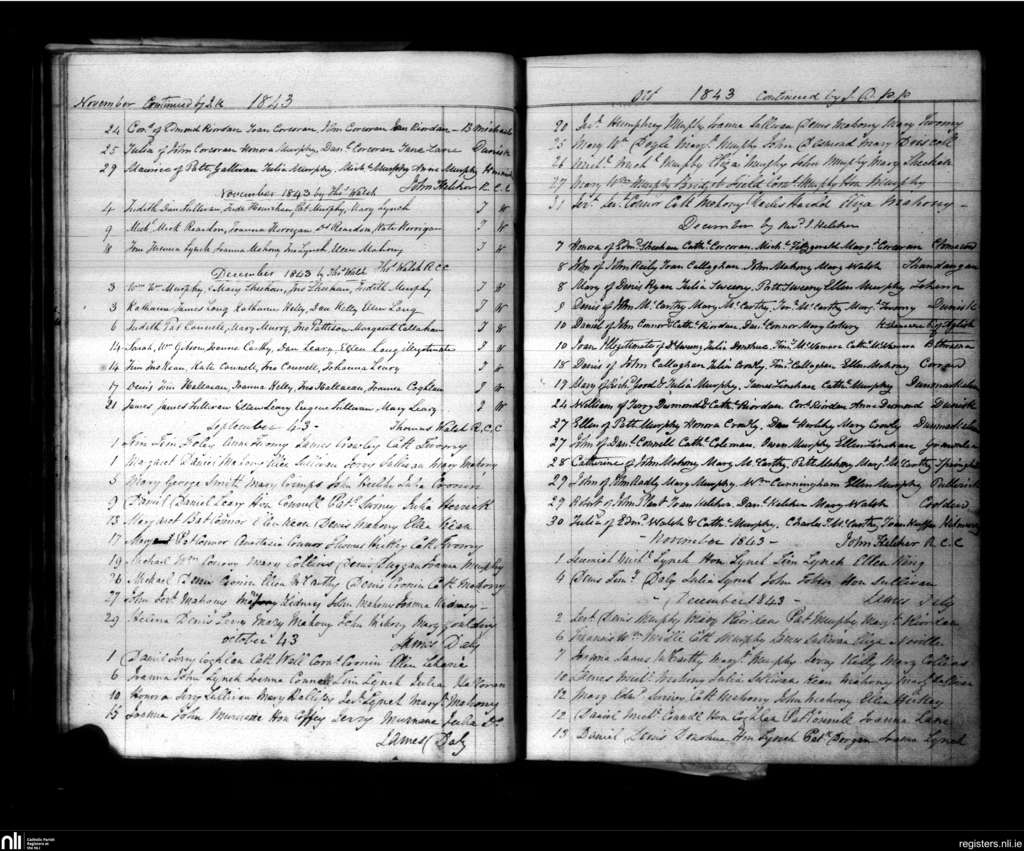 Kilmurry; County of Cork; Diocese of Cork and Ross. Baptisms, Sep. 1843 to Dec. 1843