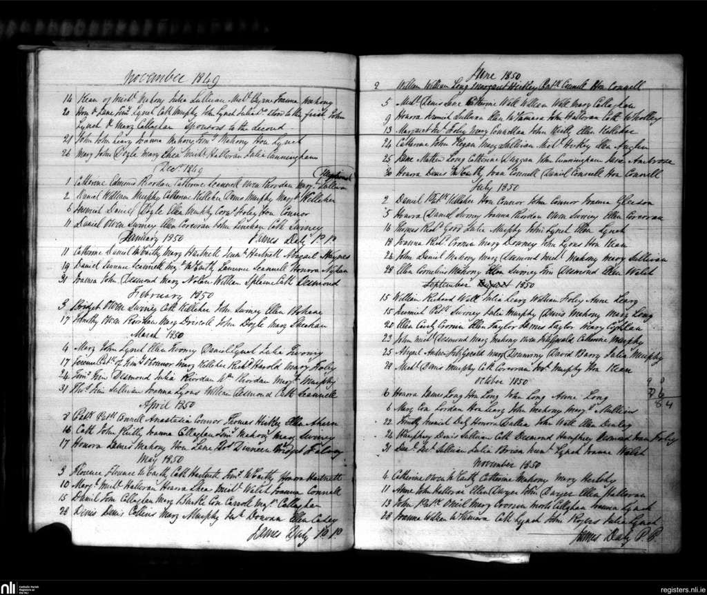 Kilmurry; County of Cork; Diocese of Cork and Ross. Baptisms, Nov. 1849 to Nov. 1850