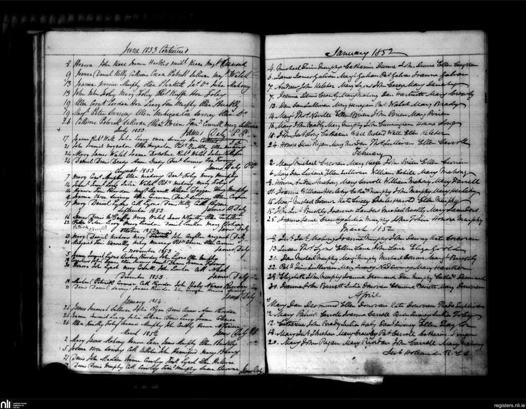 Kilmurry; County of Cork; Diocese of Cork and Ross. Baptisms, Jan. 1852 to Mar. 1854