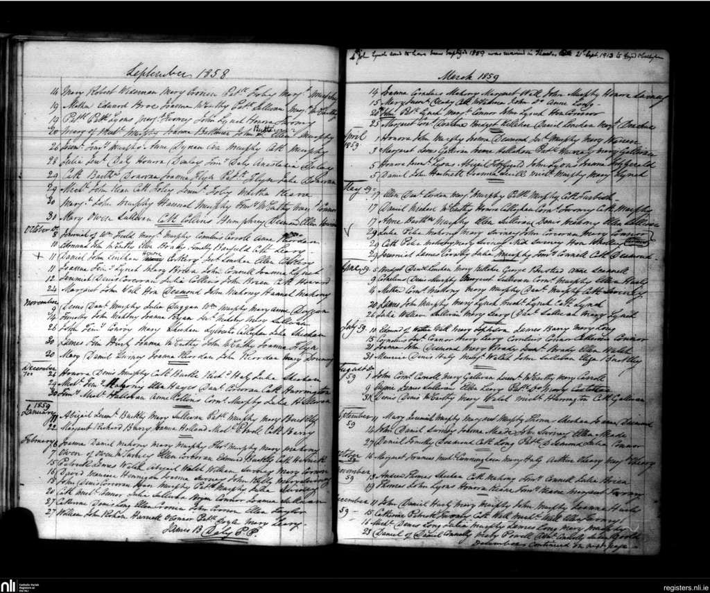 Kilmurry; County of Cork; Diocese of Cork and Ross. Baptisms, Sep. 1858 to Dec. 1859