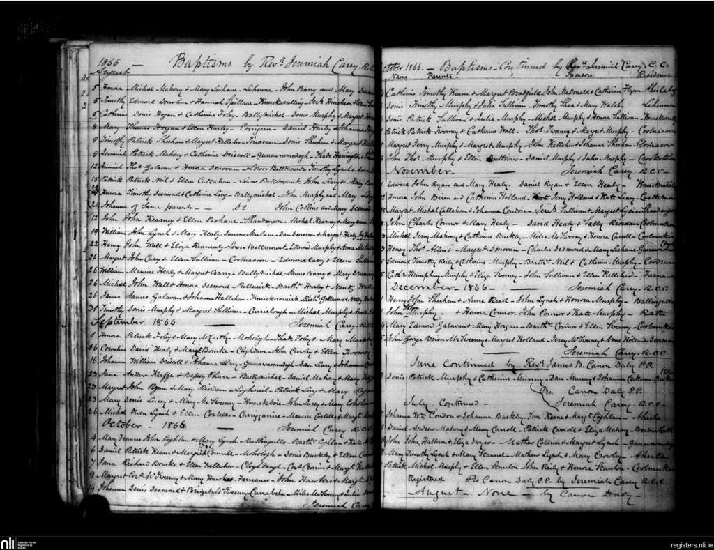 Kilmurry; County of Cork; Diocese of Cork and Ross. Baptisms, June 1866 to Dec. 1866