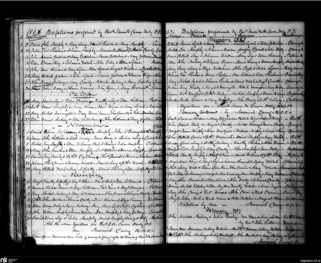 Kilmurry; County of Cork; Diocese of Cork and Ross. Baptisms, Sep. 1866 to Feb. 1867