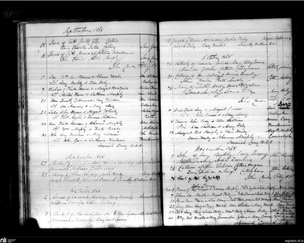 Kilmurry; County of Cork; Diocese of Cork and Ross. Baptisms, Sep. 1868 to Nov. 1868