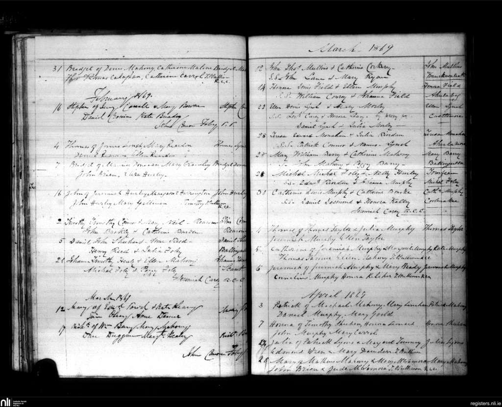 Kilmurry; County of Cork; Diocese of Cork and Ross. Baptisms, Jan. 1869 to Apr. 1869