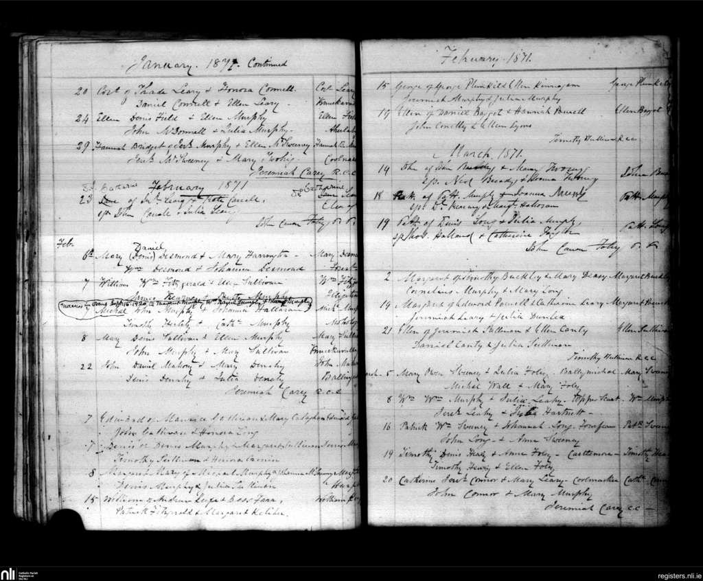 Kilmurry; County of Cork; Diocese of Cork and Ross. Baptisms, Jan. 1871 to Mar. 1871