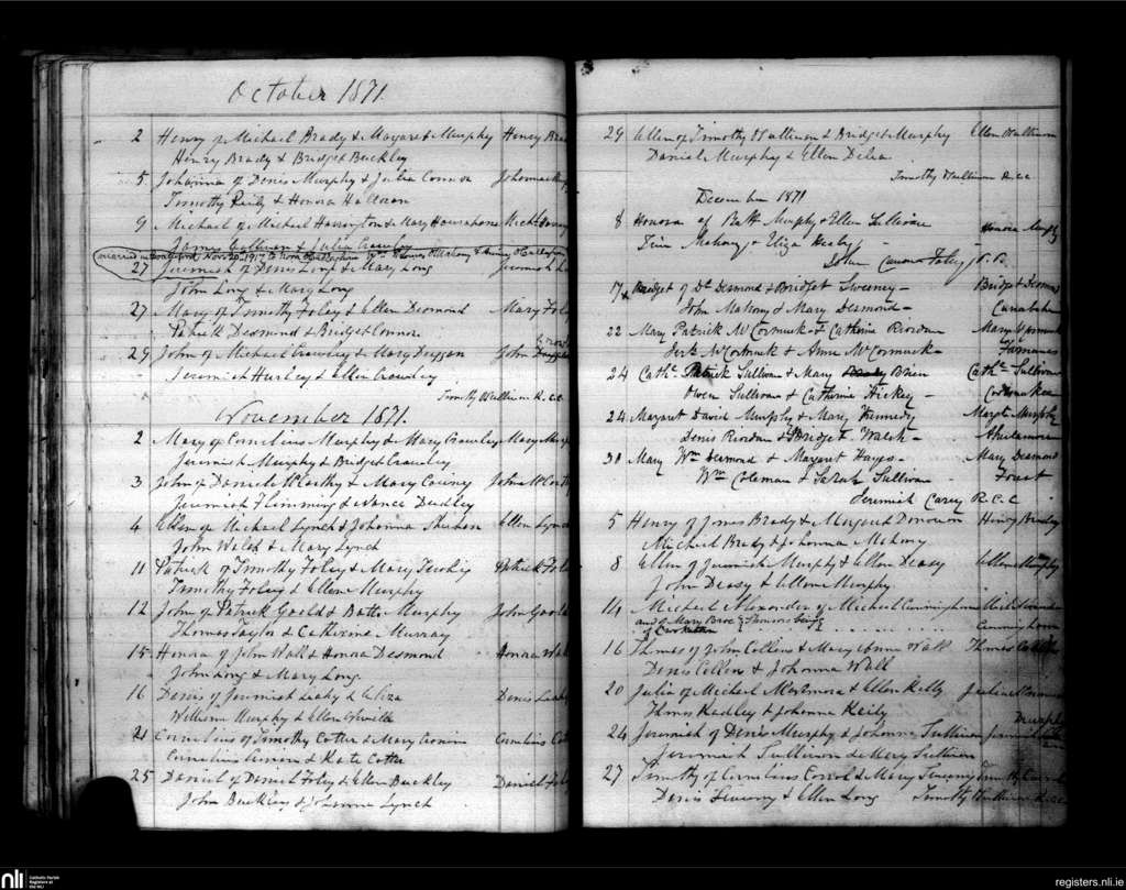 Kilmurry; County of Cork; Diocese of Cork and Ross. Baptisms, Oct. 1871 to Dec. 1871