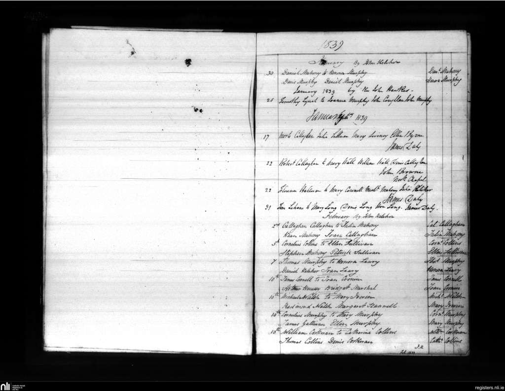Kilmurry; County of Cork; Diocese of Cork and Ross. Marriages, Jan. 1839 to Feb. 1839