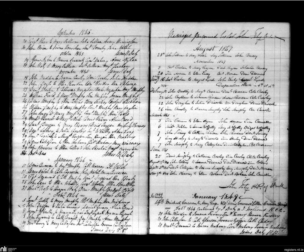 Kilmurry; County of Cork; Diocese of Cork and Ross. Marriages, Sep. 1845 to Jan. 1849