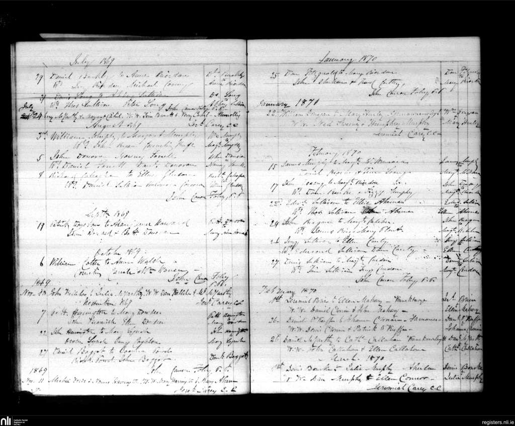 Kilmurry; County of Cork; Diocese of Cork and Ross. Marriages, July 1869 to Mar. 1870