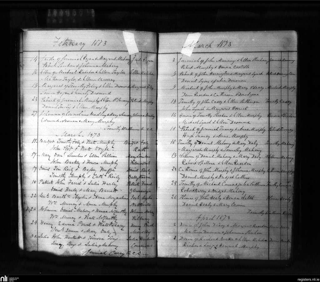 Kilmurry; County of Cork; Diocese of Cork and Ross. Baptisms, Feb. 1873 to Apr. 1873