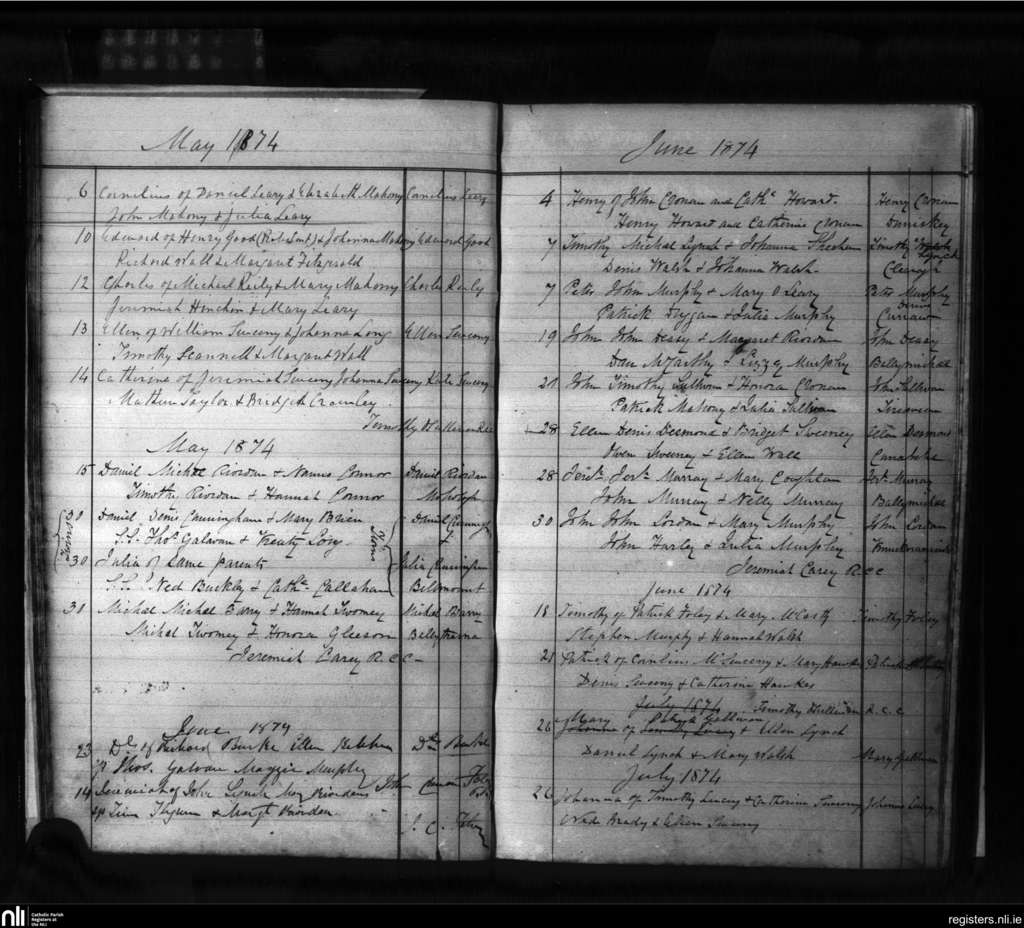 Kilmurry; County of Cork; Diocese of Cork and Ross. Baptisms, May 1874 to July 1874