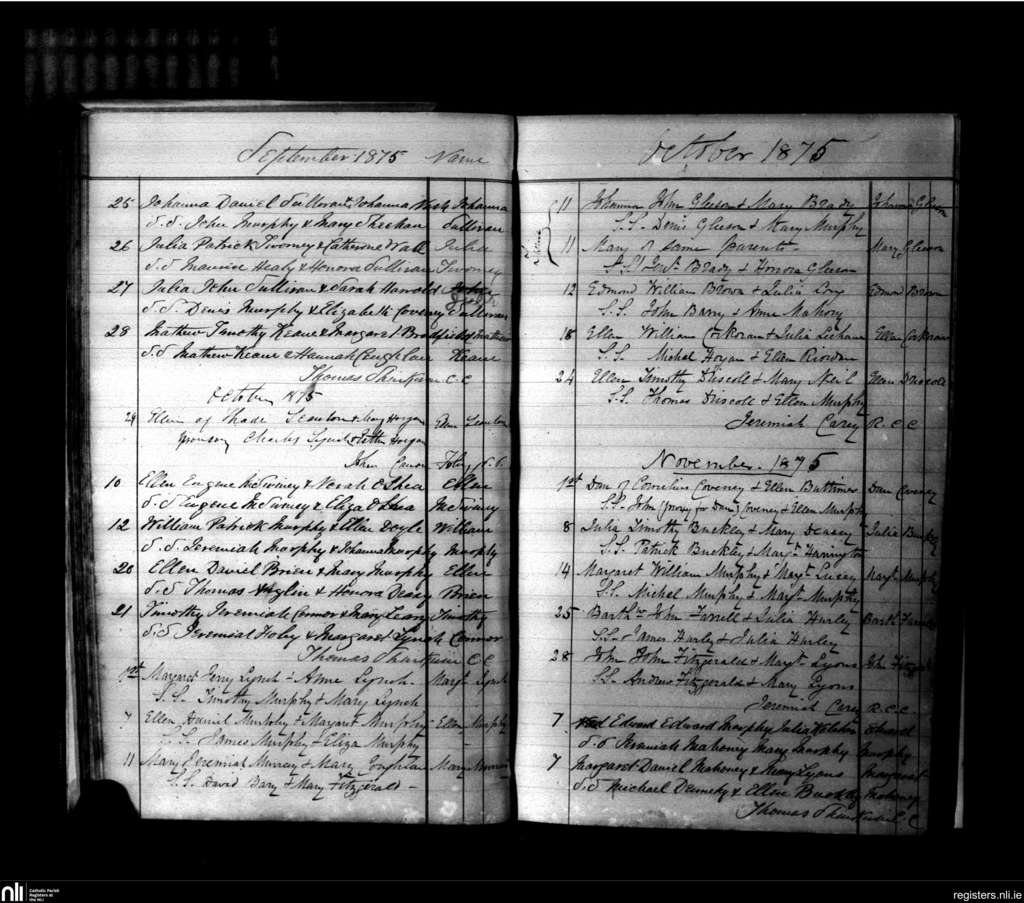 Kilmurry; County of Cork; Diocese of Cork and Ross. Baptisms, Sep. 1875 to Nov. 1875