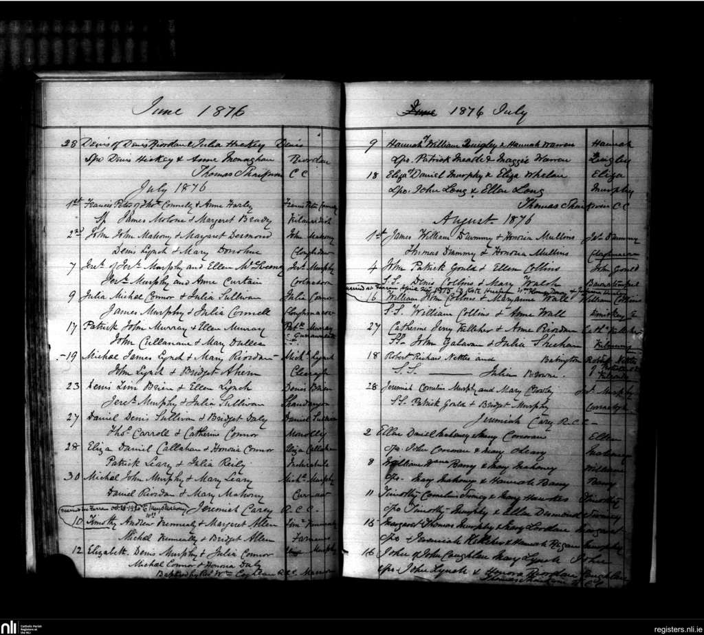 Kilmurry; County of Cork; Diocese of Cork and Ross. Baptisms, June 1876 to Aug. 1876