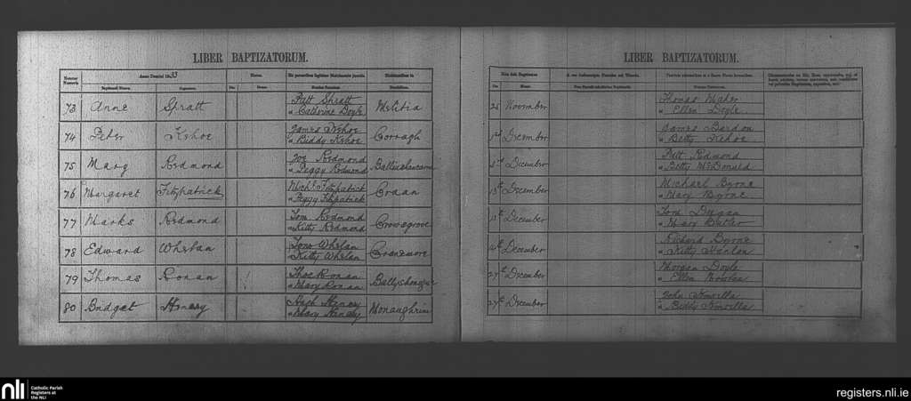 Clonegal; County of Wicklow, Carlow, Wexford; Diocese of Kildare and Leighlin. Baptisms, Nov. 1833 to Dec. 1833