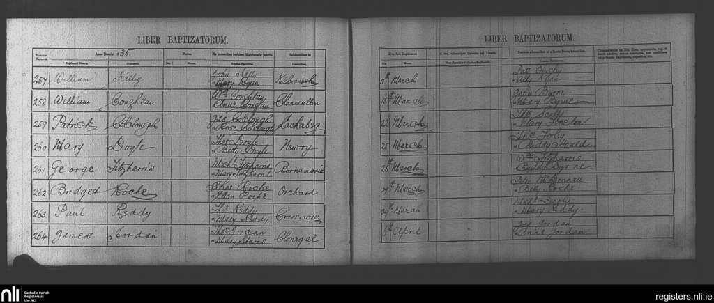 Clonegal; County of Wicklow, Carlow, Wexford; Diocese of Kildare and Leighlin. Baptisms, Mar. 1835 to Apr. 1835