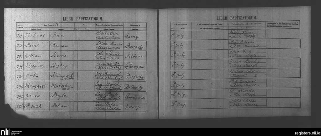 Clonegal; County of Wicklow, Carlow, Wexford; Diocese of Kildare and Leighlin. Baptisms, July 1835 to Aug. 1835