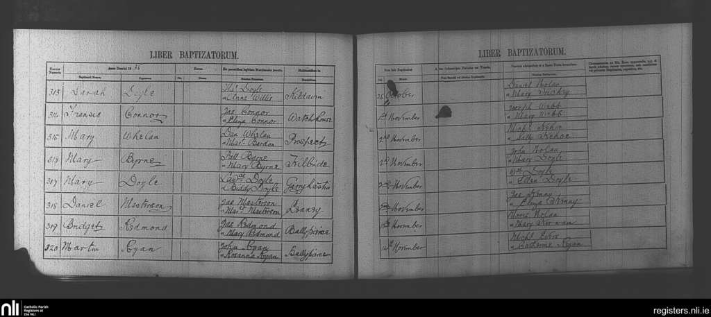 Clonegal; County of Wicklow, Carlow, Wexford; Diocese of Kildare and Leighlin. Baptisms, Oct. 1835 to Nov. 1835