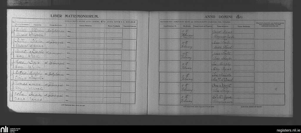 Clonegal; County of Wicklow, Carlow, Wexford; Diocese of Kildare and Leighlin. Marriages, Feb. 1834