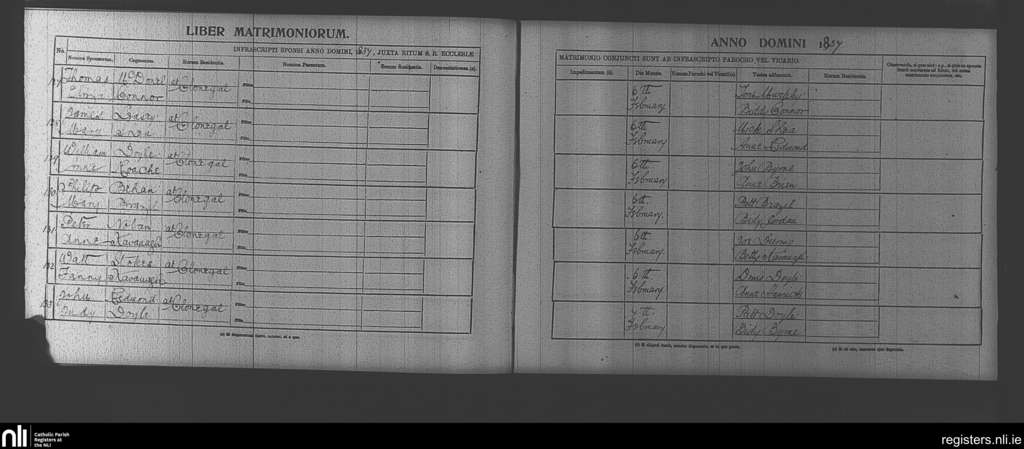 Clonegal; County of Wicklow, Carlow, Wexford; Diocese of Kildare and Leighlin. Marriages, Feb. 1837