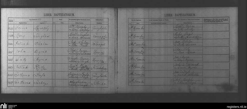 Clonegal; County of Wicklow, Carlow, Wexford; Diocese of Kildare and Leighlin. Baptisms, Nov. 1842 to Dec. 1842