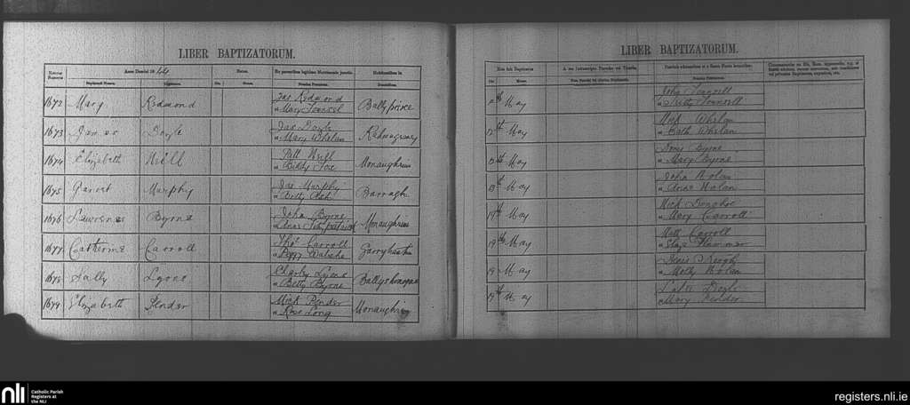 Clonegal; County of Wicklow, Carlow, Wexford; Diocese of Kildare and Leighlin. Baptisms, May 1844