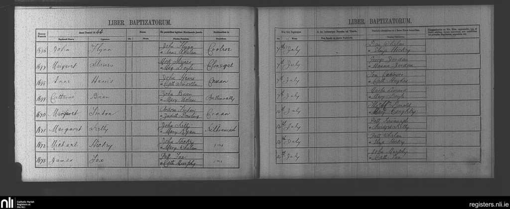 Clonegal; County of Wicklow, Carlow, Wexford; Diocese of Kildare and Leighlin. Baptisms, July 1844