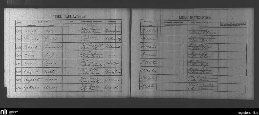 Clonegal; County of Wicklow, Carlow, Wexford; Diocese of Kildare and Leighlin. Baptisms, Oct. 1844